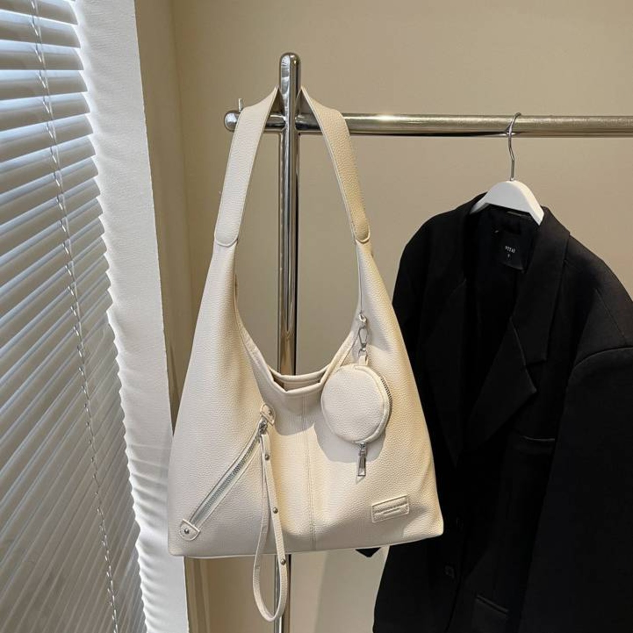 トレンド感溢れる2WAY仕様のショルダーバッグが登場。しなやかで柔らかいPUレザー素材が高見えし、オン・オフ問わず幅広いシーンで活躍します。サイドにはスタイリッシュなジッパー、取り外し可能な丸型ミニポーチ付きで機能性も抜群です。通勤や通学にもぴったりなサイズ感で、シンプルながらこなれ感のある印象に仕上がります。