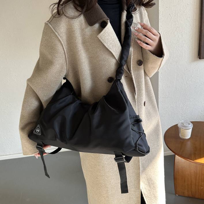ふんわりとしたフリルデザインが印象的なショルダーバッグは、ガーリーで可愛らしい雰囲気を演出してくれる人気アイテム。ナイロン素材で軽量ながらも耐久性があり、普段使いから旅行まで幅広く活躍します。シンプルながらもディテールにこだわり、毎日のコーデを格上げしてくれるアイテムです。
