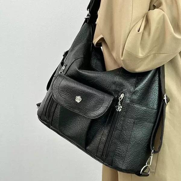 シンプルで上品なデザインながら、機能性に優れたショルダーバッグ。大容量の収納スペースに加え、外側には複数のファスナーポケットを装備し、荷物の整理整頓がしやすい仕様になっています。通勤・通学・ママバッグとしてもぴったりのデザインです。