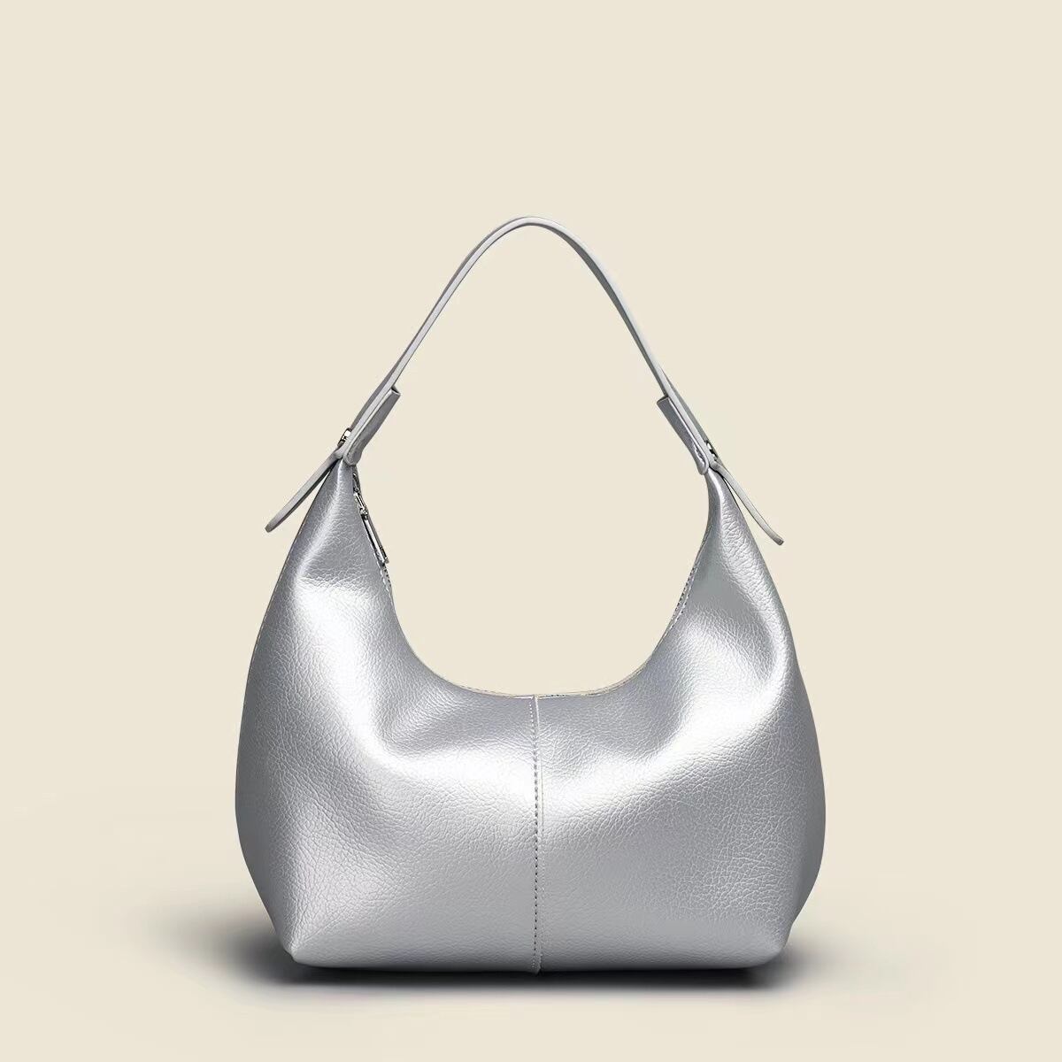 ③ シルバーのバッグは、モノトーンやブラックコーデに合わせると、洗練された都会的な印象に。夜のお出かけやイベントにもおすすめ。