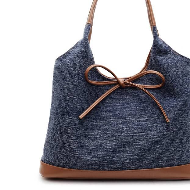 デニム風 トートバッグ 大容量 ショルダーバッグ レディース バッグ リボン付き カジュアル 上品 韓国風バッグ 秋冬 春夏 コーデ おしゃれ 人気 K-B0192