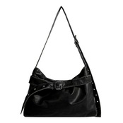 ベルトデザイン ショルダーバッグ 大容量 バッグ 黒 ワンショルダー トート 肩掛け モード系 ストリートコーデ 韓国ファッション 海外トレンド 大人女子 通勤通学 A4収納 ブラック K-B0196