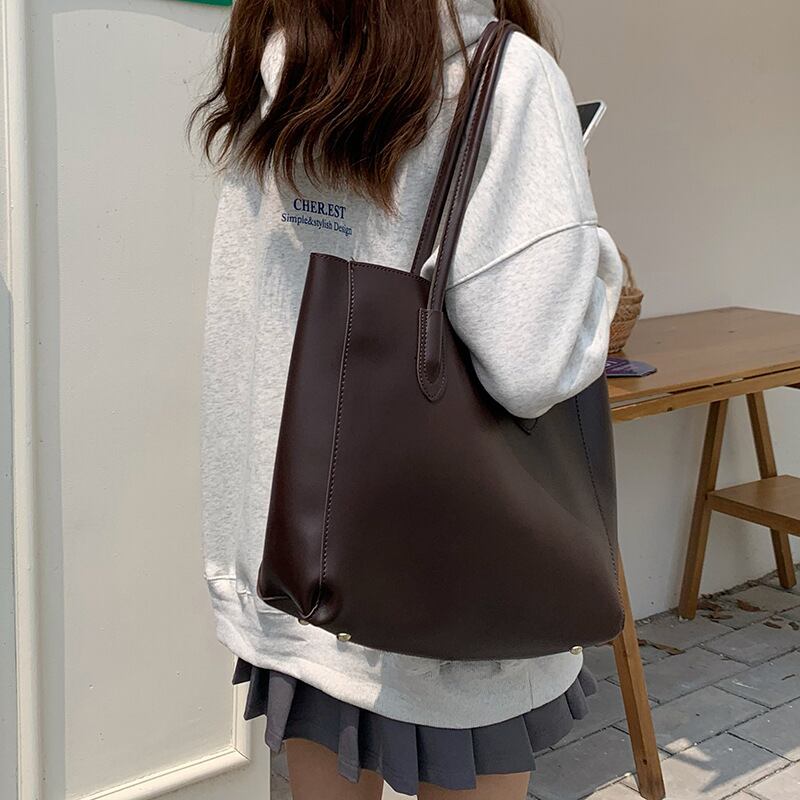 洗練されたシンプルデザインが魅力のフェイクレザートートバッグ。無駄を削ぎ落としたシルエットは、どんなスタイルにも溶け込む万能さが魅力。通勤や通学、ショッピングやママバッグとしても活躍し、大容量ながらも上品な印象を与えてくれる逸品です。