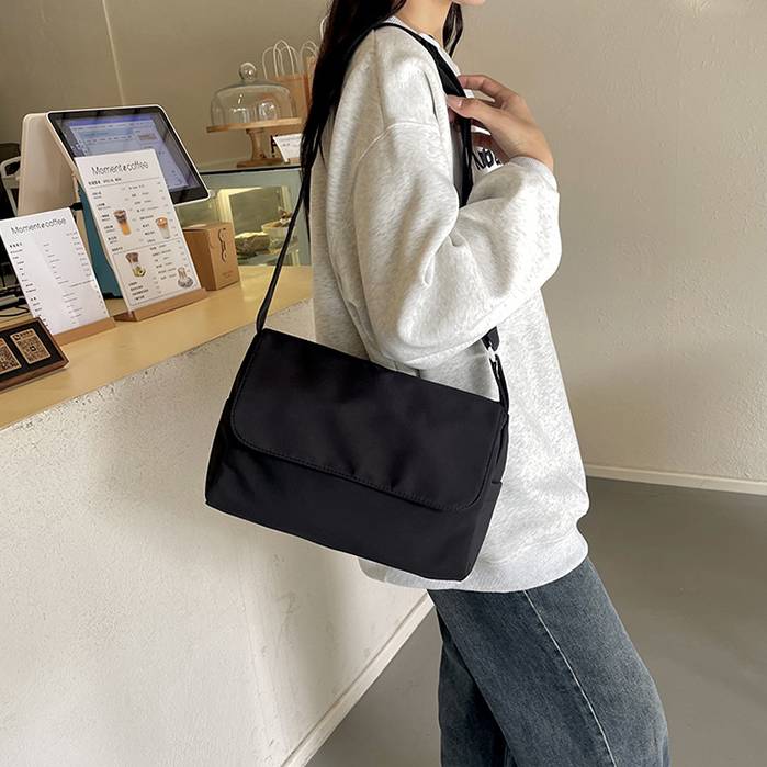 ショルダーストラップは調節可能で、斜めがけにも肩掛けにも対応。通学・通勤はもちろん、お出かけやカフェ巡りにもぴったりです。マグネットボタン付きで開け閉めもスムーズ、内ポケットも付いていて小物の整理も◎。A4対応サイズで機能性もばっちり。