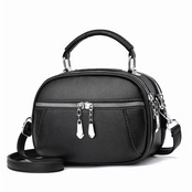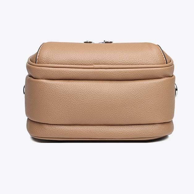 上質な合皮素材を使用しており、手触りが柔らかく高見え効果も抜群。前面のダブルジッパーポケットがデザインのアクセントとなっており、見た目以上の収納力と機能性を両立。肩掛けも手持ちもできる2way仕様で、日常使いから旅行、ショッピングまで幅広く活躍します。