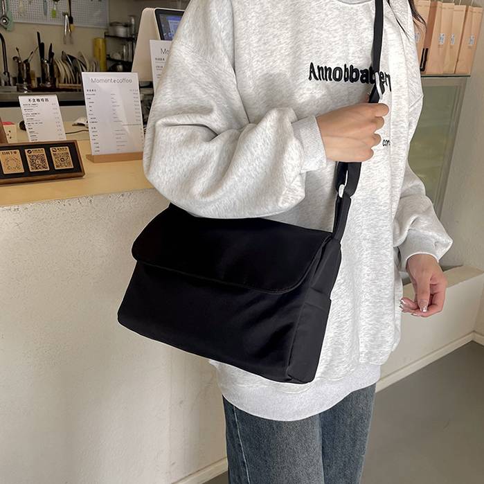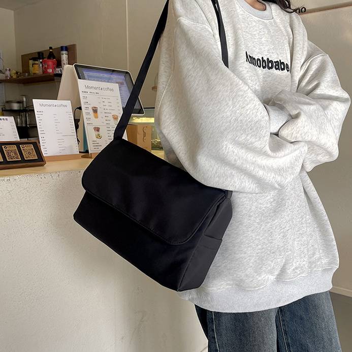 ショルダーストラップは調節可能で、斜めがけにも肩掛けにも対応。通学・通勤はもちろん、お出かけやカフェ巡りにもぴったりです。マグネットボタン付きで開け閉めもスムーズ、内ポケットも付いていて小物の整理も◎。A4対応サイズで機能性もばっちり。