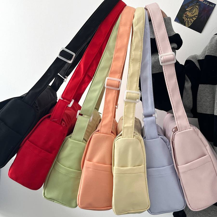 ショルダーバッグ メッセンジャーバッグ 韓国バッグ レディース 斜めがけ 軽量 シンプル 大容量 可愛い ブラック ライトブルー ライトイエロー ベージュ オレンジ レッド ピンク K-B0208
