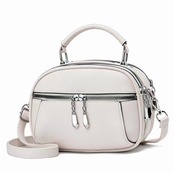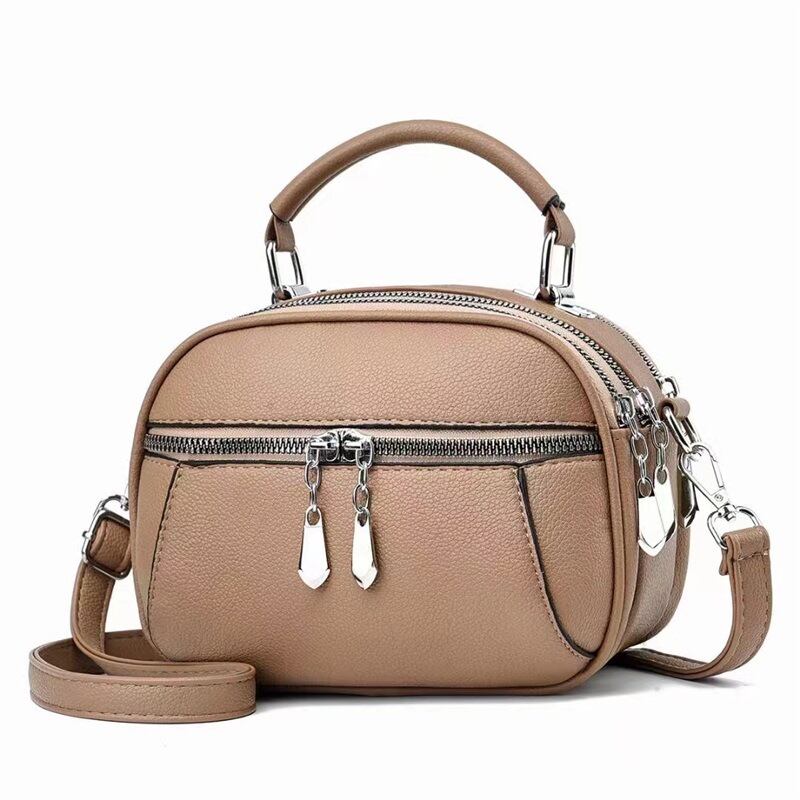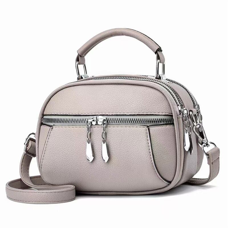 上質な合皮素材を使用しており、手触りが柔らかく高見え効果も抜群。前面のダブルジッパーポケットがデザインのアクセントとなっており、見た目以上の収納力と機能性を両立。肩掛けも手持ちもできる2way仕様で、日常使いから旅行、ショッピングまで幅広く活躍します。