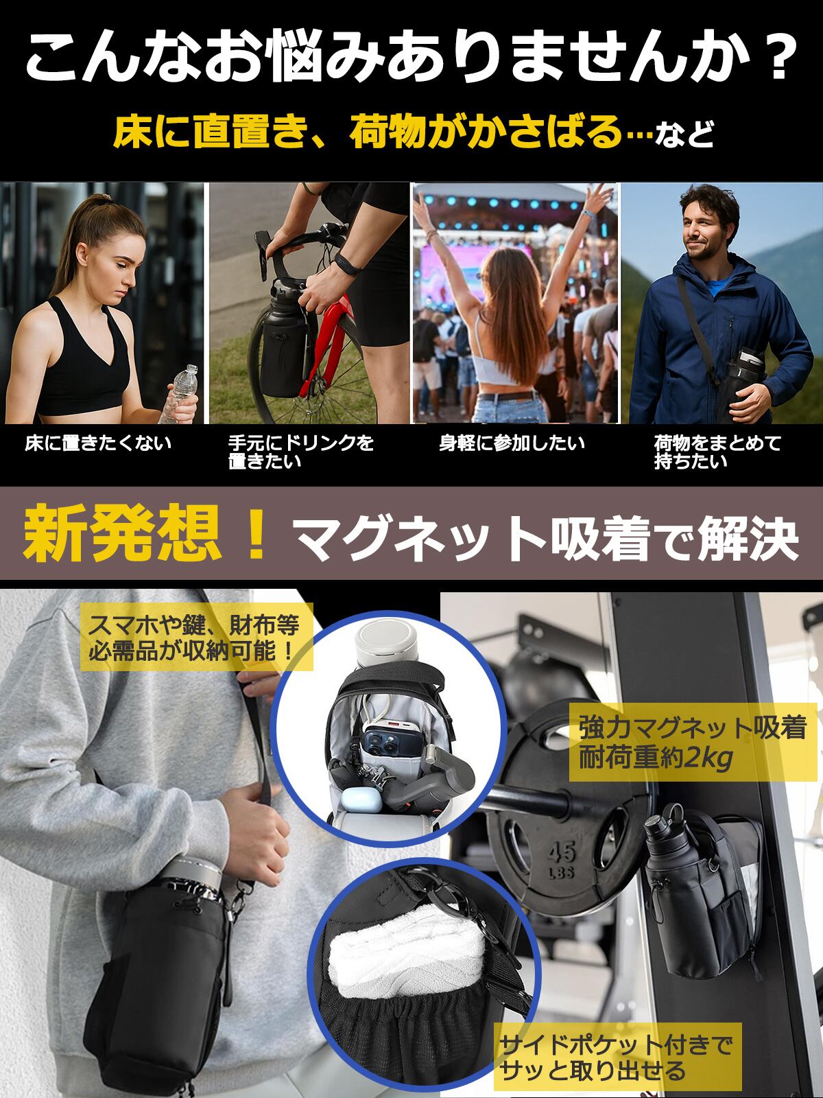 ジムバッグ ショルダーバッグ ボディバッグ マグネット メンズ レディース バッグ ボトルホルダー 水筒 水筒ホルダー ボトルバッグ 水筒バッグ スポーツ ジム フィットネス 韓国 ファッション オフィスカジュアル サッカー バスケ 野球 運動 散歩 学生 部活 お洒落 磁気 撥水 防水 通勤 通学 男女兼用 春 夏 秋 冬 春夏 秋冬 大人 子供 K-B0179