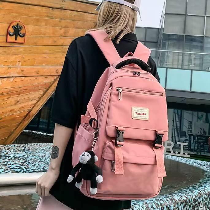 シンプルながらも可愛いくまのチャーム付きで、韓国風ファッションとの相性も抜群!6色展開で、お気に入りのカラーがきっと見つかります。中高生の通学バッグとしてはもちろん、週末のレジャーや旅行バッグとしても使いやすい万能デザイン。おしゃれで実用性も抜群なリュックをぜひお試しください。