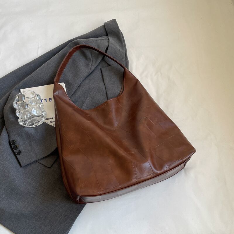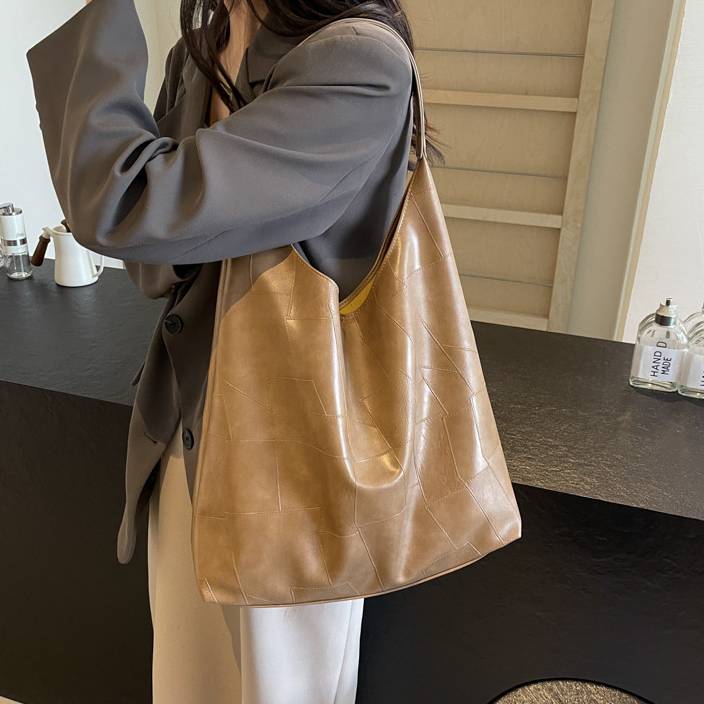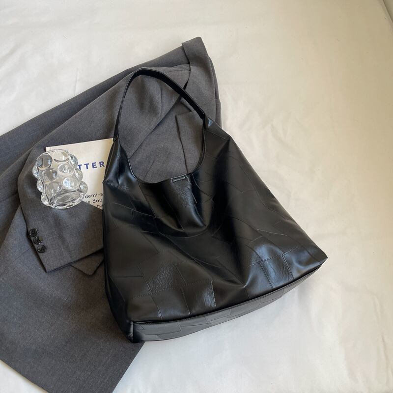 柔らかくしっとりとしたフェイクレザーを使用した、上品なキルティング風のワンショルダーバッグ。ステッチが施されたパッチワーク調のデザインが、シンプルながらも高見えするアクセントに。通勤や通学、デイリーからちょっとしたお出かけまで幅広いシーンにマッチする万能トートです。