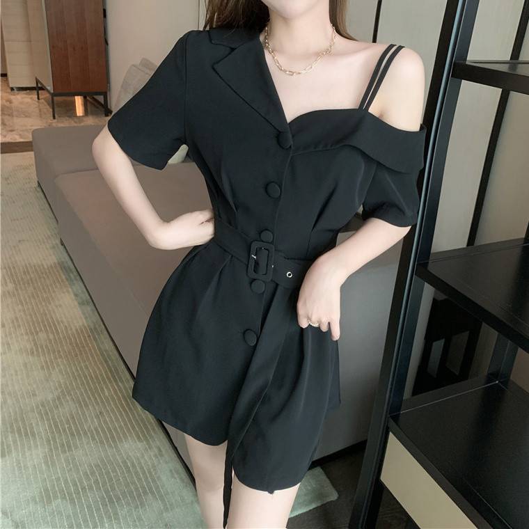 レディース ワンピース オフショルダー ベルト付き ショート丈 半袖 2WAYデザイン フロントボタン セクシー 大人可愛い 韓国ファッション 春 夏 秋 通勤 デート カジュアル きれいめ ブラック ホワイト 2色展開 S M L XL 体型カバー ミニワンピース C-OSS0168