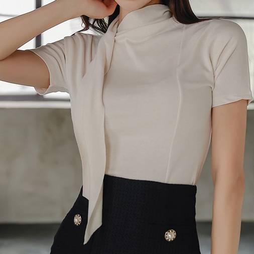 商品名:リボンタイ 半袖トップス×ハイウエストタイトスカート セットアップ風ワンピース