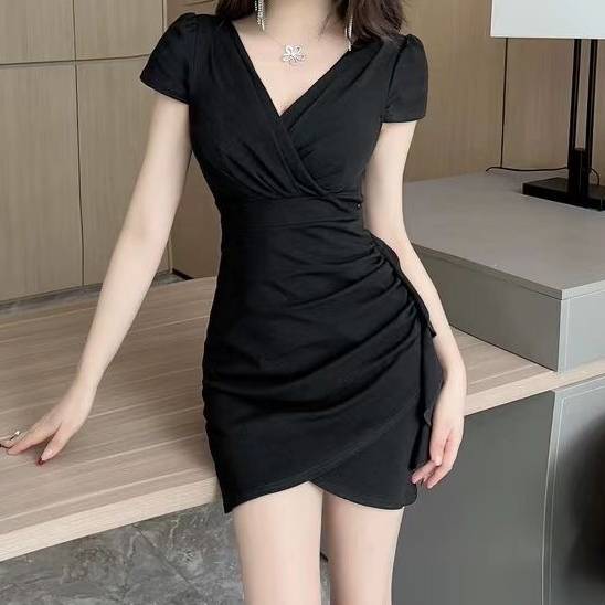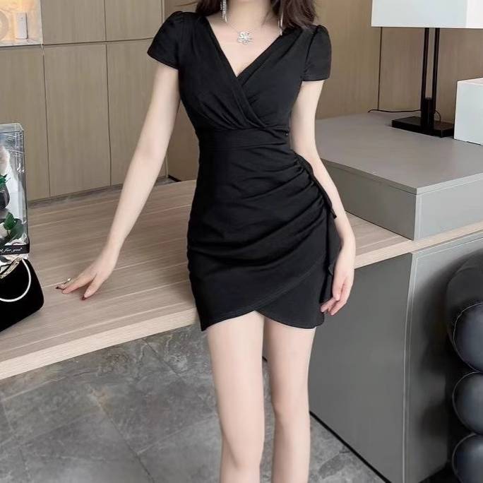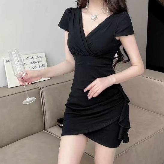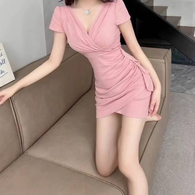 ミニワンピース タイトワンピース レディース セクシー 深Vネック ドレープ デザイン ショート丈 ワンピ タイト 大人可愛い 韓国風 パーティー お呼ばれ 食事会 デート きれいめ ブラック ピンク 20代 30代 スリム シルエット 美脚 上品 ワンタイプ C-OSS0223