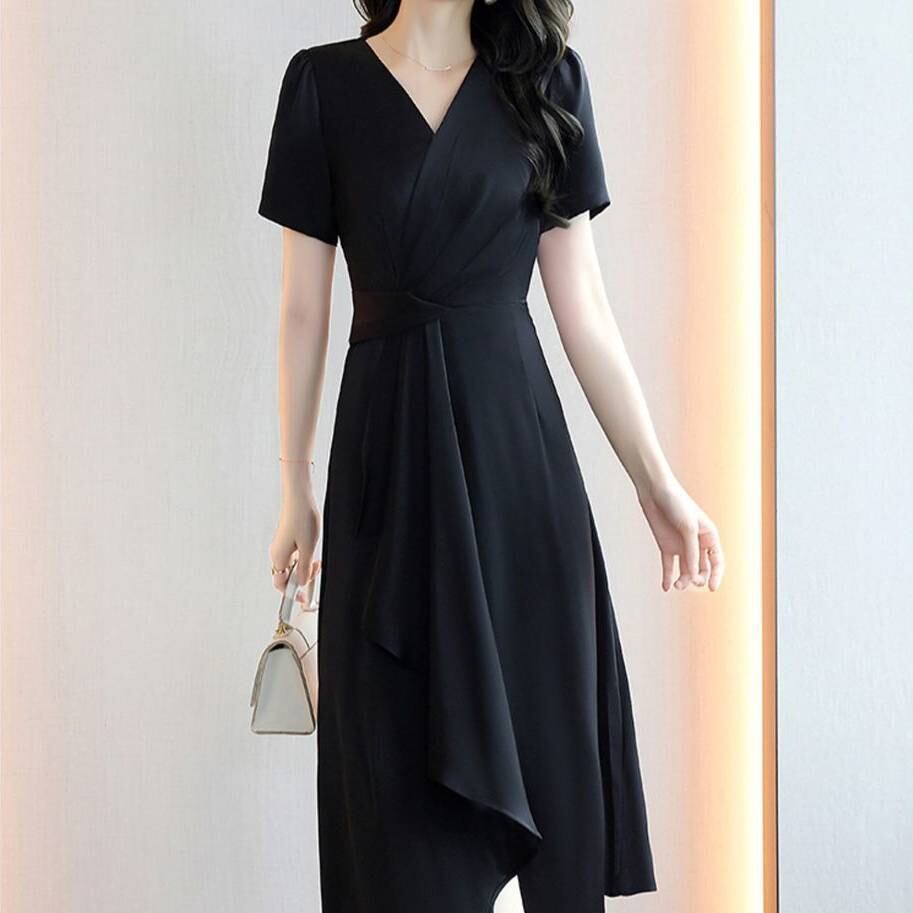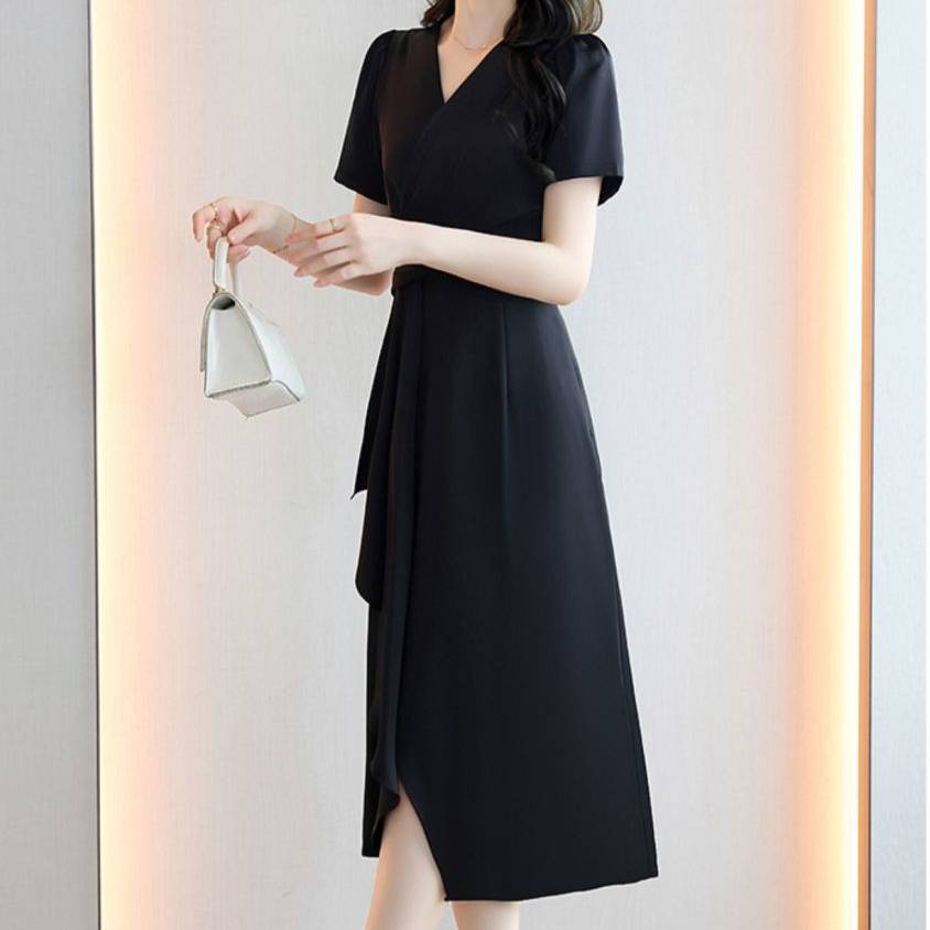 商品名:Vネック ワンピース レディース 上品 ミディ丈 ドレープデザイン フレアワンピース