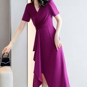 ウエストを自然に引き締めるラップ風デザインで、女性らしいシルエットを演出します。