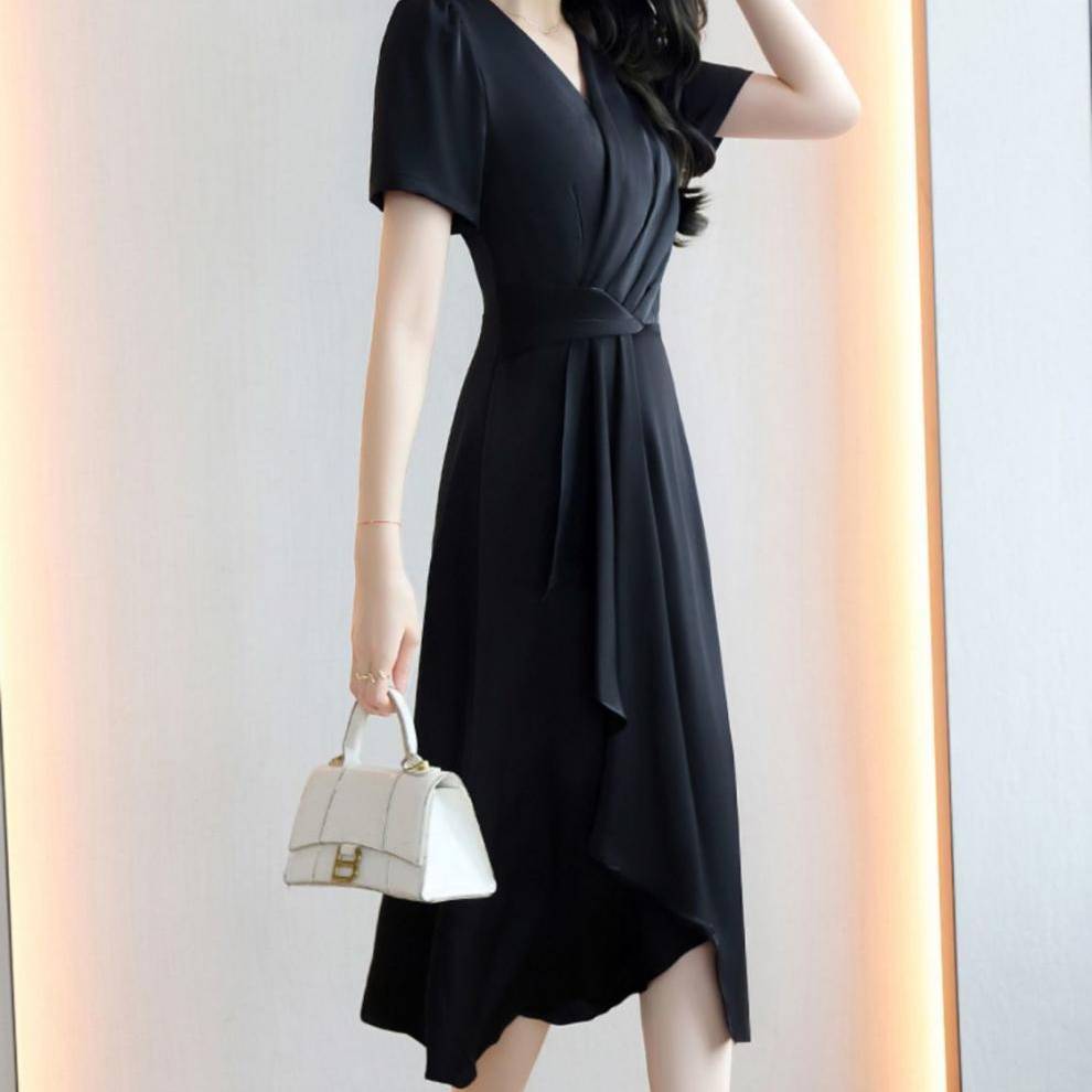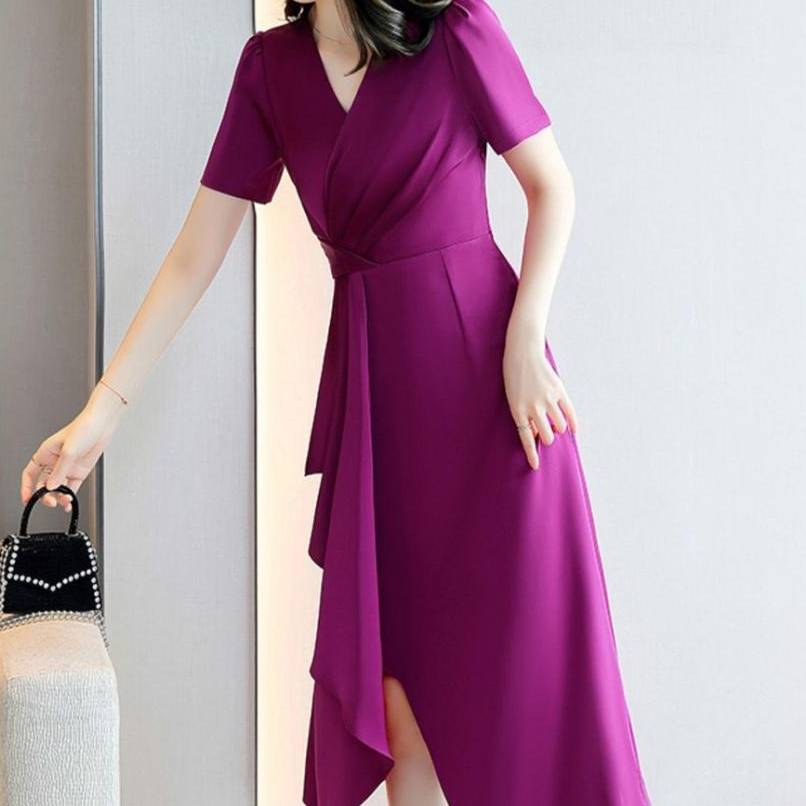 ワンピース レディース Vネック フレア ミディ丈 上品 きれいめ ドレープデザイン ブラック パープル ホワイト エレガント 体型カバー シフォン風 春 夏 秋 通勤 オフィス 結婚式 二次会 お呼ばれ デート フォーマル 大人女子 清楚 韓国風 ファッション シンプル おしゃれ 人気 トレンド 着痩せ効果 C-OSS0186
