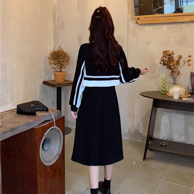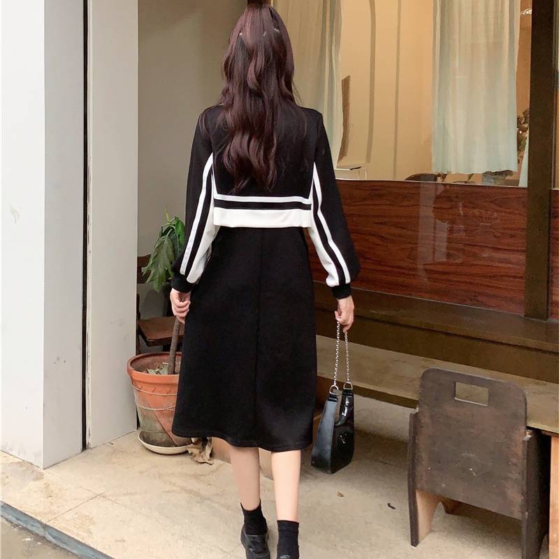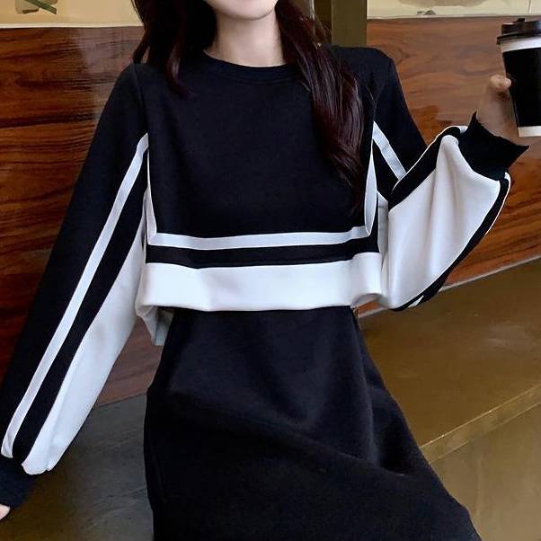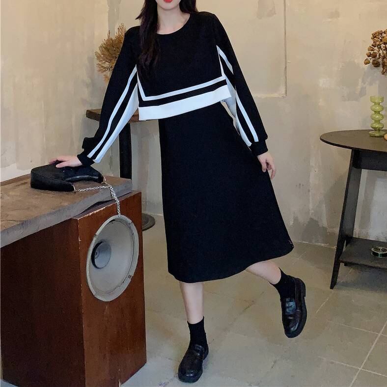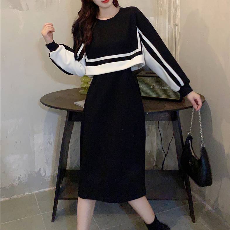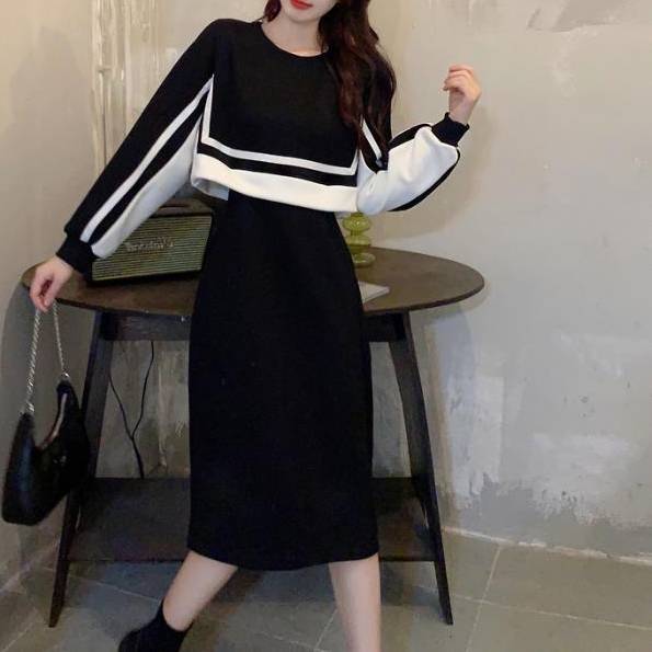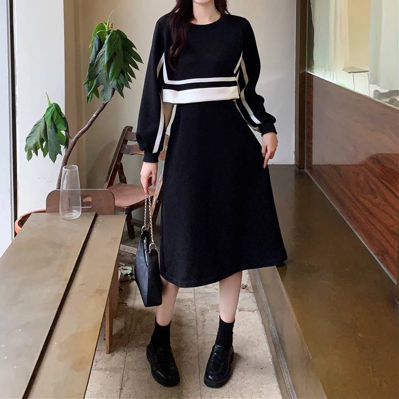 ニットワンピース レディース 長袖 ワンピース バイカラー ブラック 体型カバー Aライン ミディ丈 シンプル きれいめ 大人可愛い カジュアル 上品 秋冬 春 着痩せ効果 オフィスコーデ 通勤 通学 お出かけ デート 韓国風 ファッション ストリート モード 人気 トレンド おしゃれ 大人女子 コーデ C-COSS0185