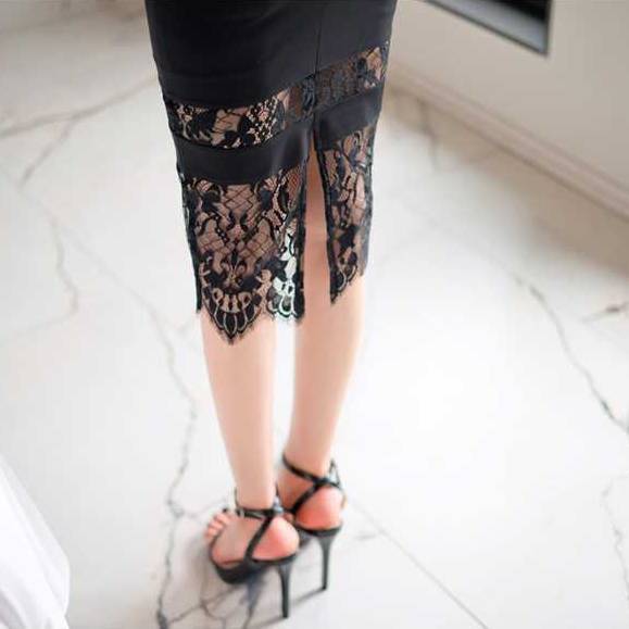 繊細なレースが上品に透ける、大人の女性の魅力を引き立てるタイトミディドレス。