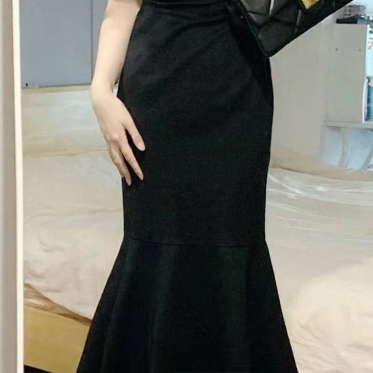大人の女性らしさを引き立てる、上品で美シルエットのブラックワンピースです。身体のラインに美しく寄り添うタイト設計と、裾に向かってふんわり広がるマーメイドラインが華やかさを演出。シンプルでありながら存在感のあるデザインで、特別な日にも普段のデートにも活躍します。