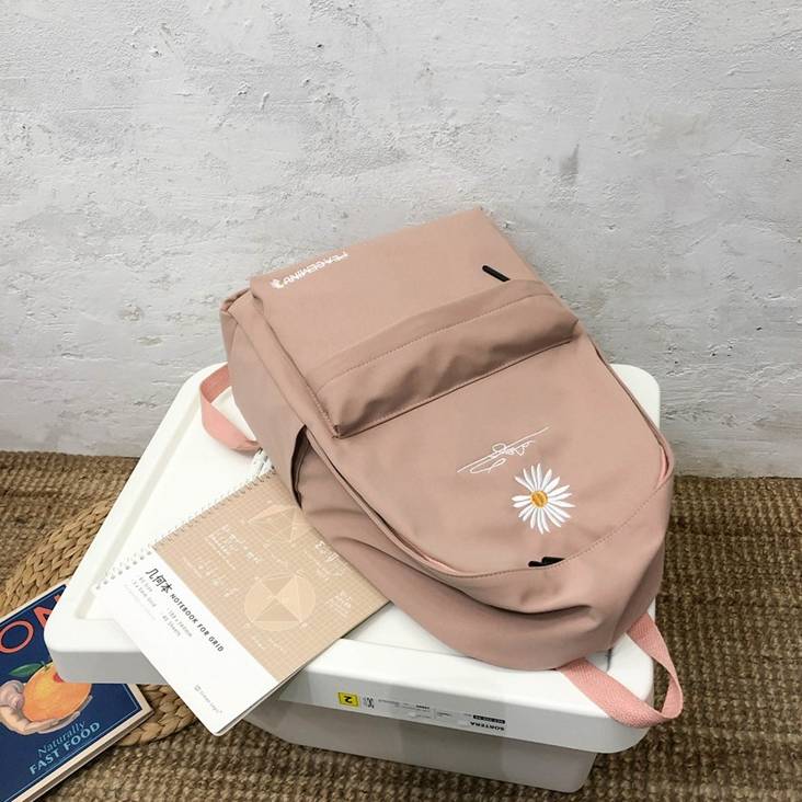 シンプルな無地ベースにワンポイントの花刺繍が映え、韓国ファッションやカジュアルコーデ、ナチュラルスタイルとも相性抜群。5色展開なので、服装や気分に合わせて選べるのも嬉しいポイント。毎日使いたくなる、ちょうどいいバランスのバックパックです。