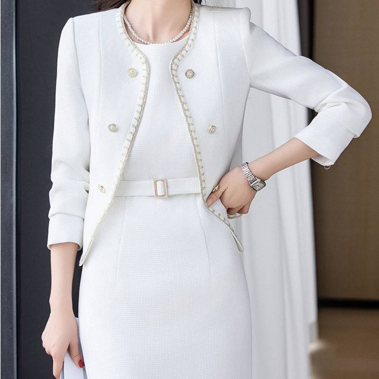 商品名:エレガントツイード風ジャケットセットアップ ドレススーツ風 上品フォーマルワンピース
