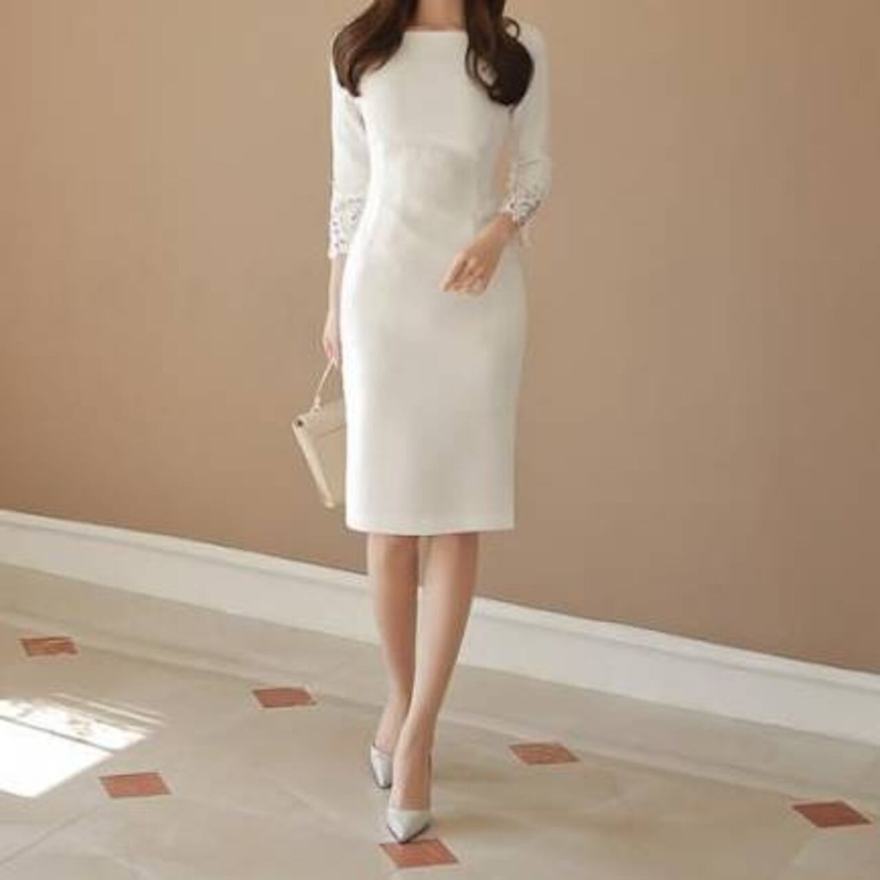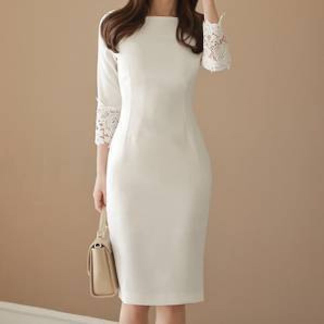 上品で洗練されたシルエットを追求したエレガンススリムラインワンピース。無駄のないタイトデザインが女性らしい曲線を美しく見せ、七分袖レースが柔らかな印象をプラスします。フォーマルな場にも日常使いにもフィットする、万能で魅力的な一着です。