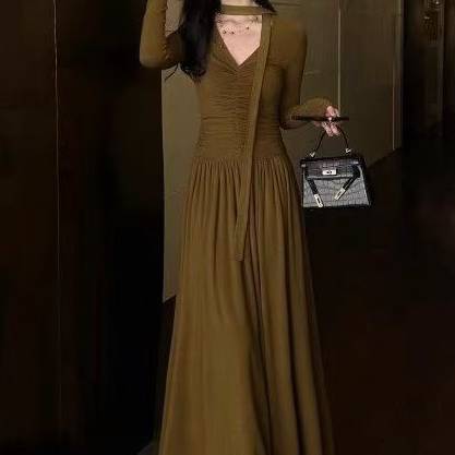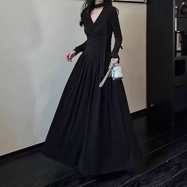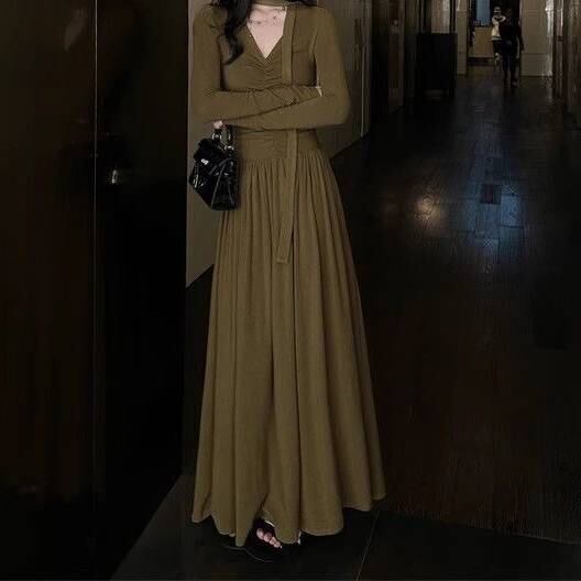 ロング丈 ワンピース 秋冬ワンピース エレガントワンピース ロングスカート レディース ドレス 上品 きれいめ 大人可愛い ブラック カーキ ワンタイプ エレガント C-OSS0234