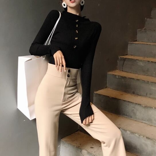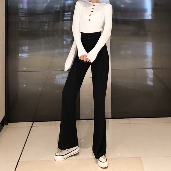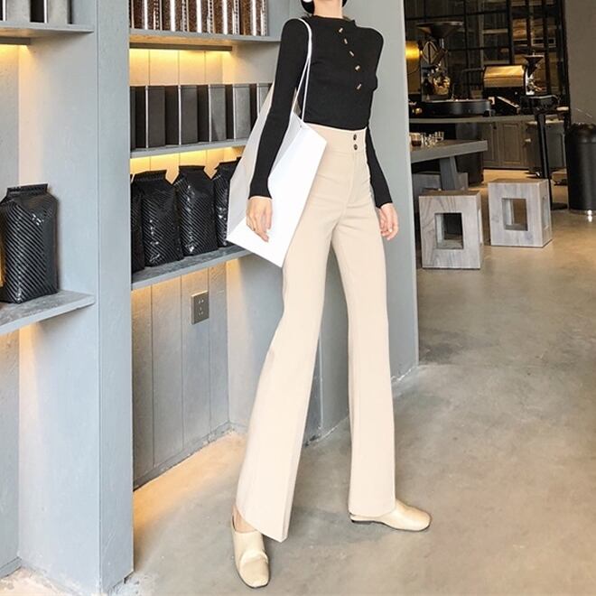 韓国風 ハイウエスト ダブルボタンパンツ C-PAW1002