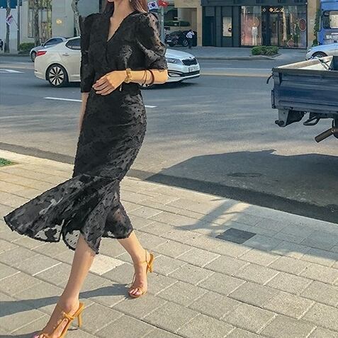 ワンピース レディース 春夏 秋冬 春 夏 秋 冬 黒 ミディアム丈ワンピース 5分袖 半袖 ドレス マーメイド レース ワンピースドレス Vネック ひざ丈 ひざ下 総レース パフスリーブ ドレスワンピース ミモレワンピース 半袖ワンピース シースルー お呼ばれ ロングワンピース 半袖 10代 20代 30代 40代 C-OSS0020