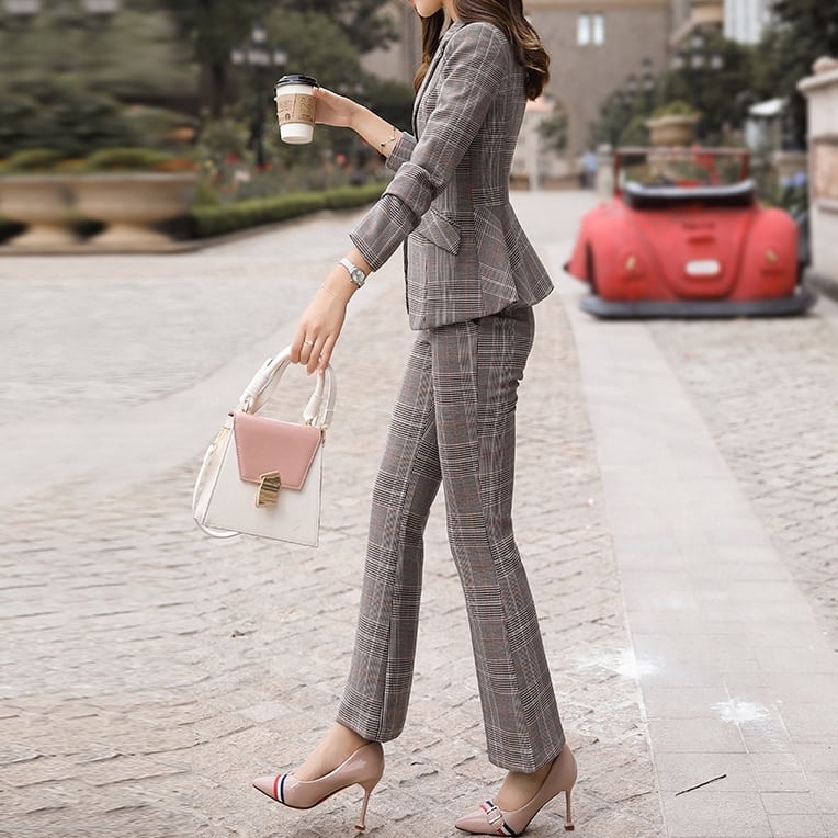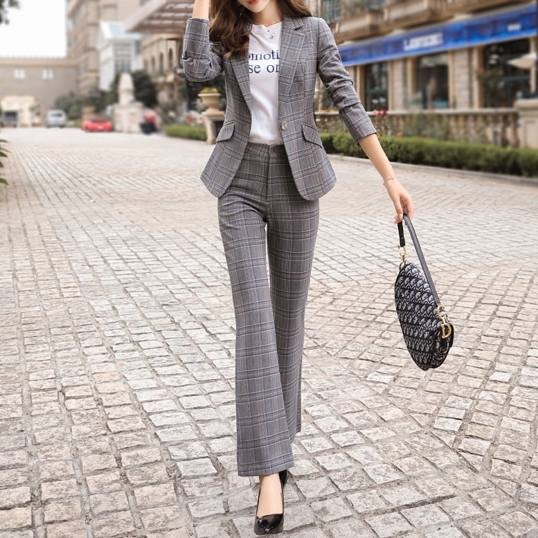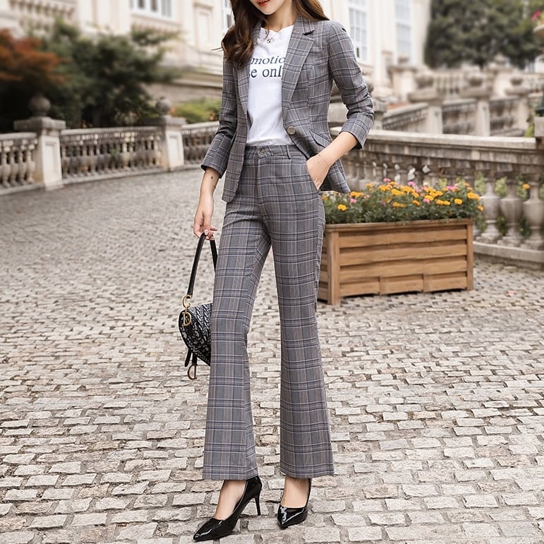 パンツスーツ レディース 春夏 秋冬 春 夏 秋 冬 スーツ チェック柄 上下セット 2点セット ジャケット パンツ セットアップ チェック柄スーツ タイト ロング パンツスーツ オフィス ロングパンツ クロップド丈 OL オフィスカジュアル 結婚式 パーティー お呼ばれ グレー ネイビー ライトブルー 10代 20代 30代 40代 C-WAW1027