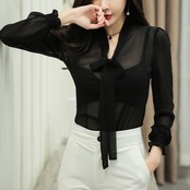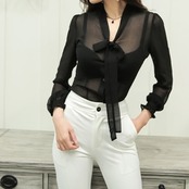 ブラウス レディース 春夏 秋冬 春 夏 秋 冬 黒 シャツ トップス 長袖 フリル 長袖トップス チュニック シースルーブラウス チュニック ブラック 韓国 ゆったり シースルー レイヤー 透かし ブラウス 透け感 ボウタイ ブラウスシャツ 体型カバー 二の腕カバー シンプル シャツブラウス オフィス カジュアル OL 上品 大人 S M L XL 10代 20代 30代 40代 C-TSS0053