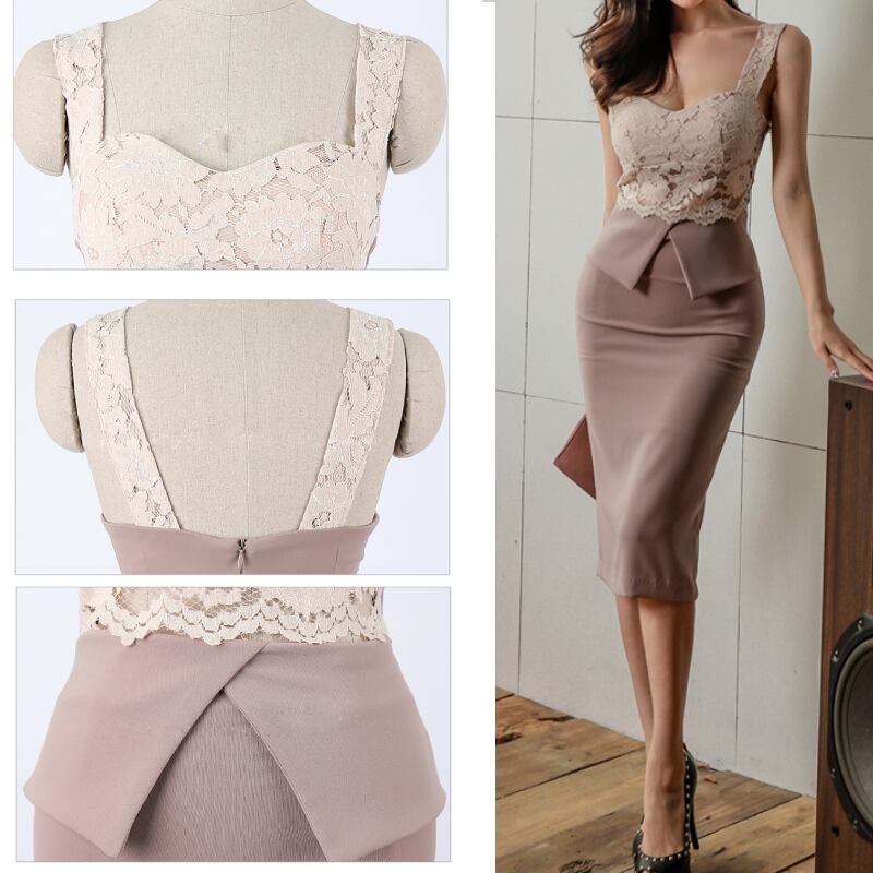 エレガントでセクシーなミディアム丈ドレスワンピース C-DSS1004