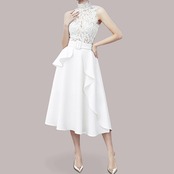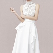 商品名:ハイネック レース 切り替え ノースリーブ ワンピース ドレス