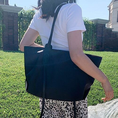 大容量のシンプルデザインのトートバッグ。