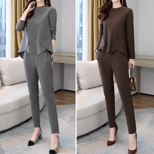 セットアップ レディース 春夏 秋冬 春 夏 秋 冬 黒 パンツスーツ パンツスタイル スーツ 無地 上下セット 2点セット ボタンデザイン きれいめ シンプル 上品 大人スタイル パンツ アシンメトリー セットアップ スカーチョ ワイドパンツ ロング パンツスーツ オフィス ロングパンツ トップス OL オフィスカジュアル 結婚式 パーティー お呼ばれ ブラック グレー ブラウン 10代 20代 30代 40代 C-WAW1069