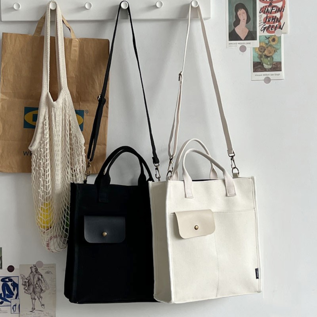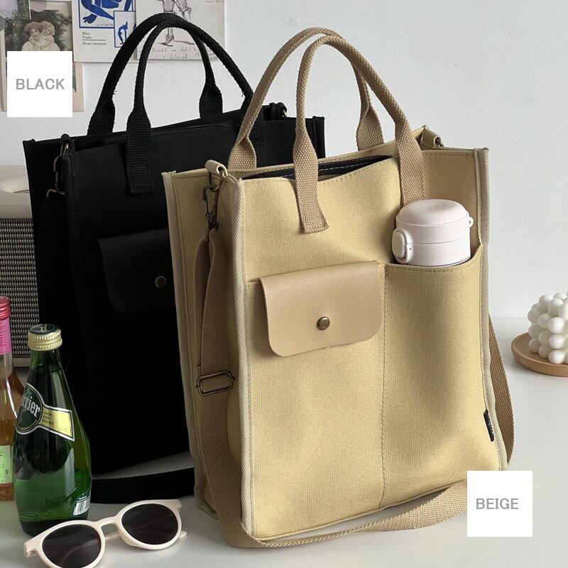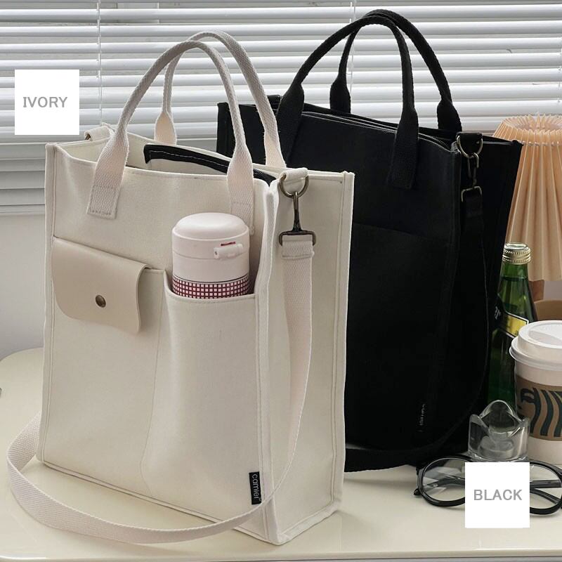 商品名:シンプル キャンバス 縦長 トートバッグ ショルダーバッグ