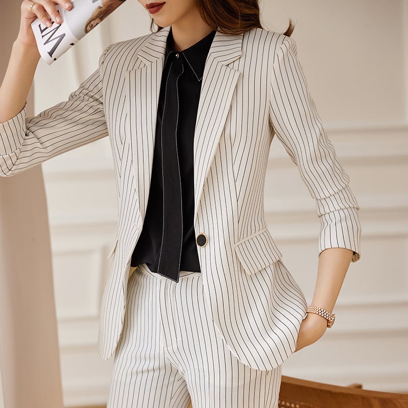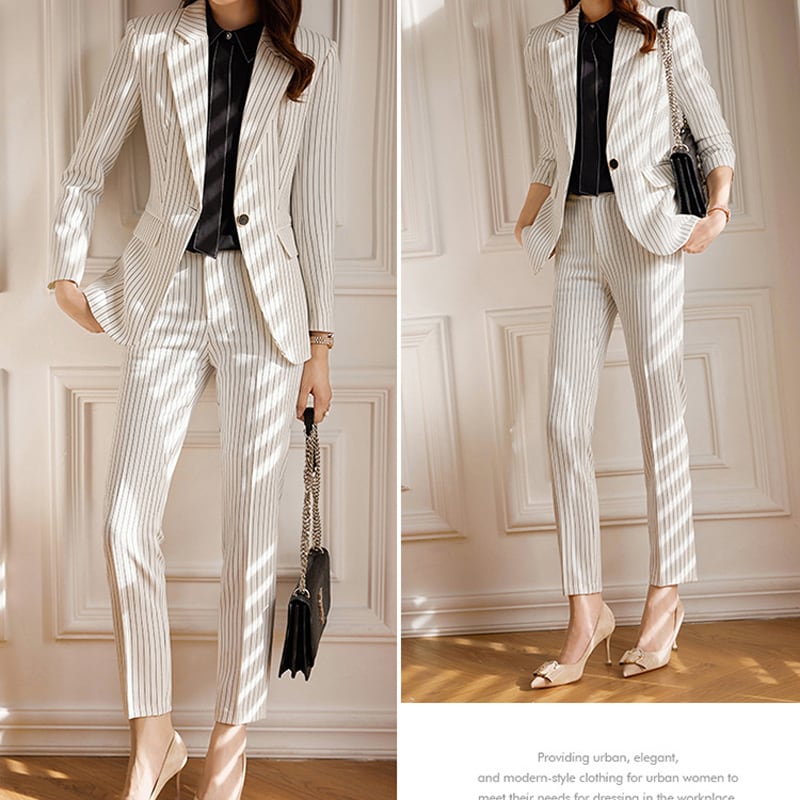 パンツスーツ レディース 春夏 秋冬 春 夏 秋 冬 黒 白 スーツ ストライプ 上下セット 2点セット ジャケット パンツ セットアップ ツーピース 長袖 シングル タイト ビジネススーツ タイト パンツスーツ ロングパンツ 韓国ファッション リクルートスーツ レディーススーツ 韓国 大きいサイズ オフィス OL オフィスカジュアル ビジネス 結婚式 パーティー お呼ばれ ブラック ホワイト ネイビー S M L XL 2XL 3XL 4XL 10代 20代 30代 40代 C-WAW1083